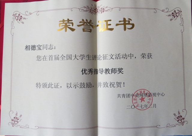 日前,上海外国语大学在共青团中央主办的“全国大学生评论征文活动”中斩获佳绩。新闻传播学院刘赫然同学和多语种新闻辅修班陈星宇同学分别荣获优秀奖和三等奖。新闻传播学院相德宝老师荣获优秀指导教师奖。上海外国语大学作为组织单位荣获优秀组织奖。