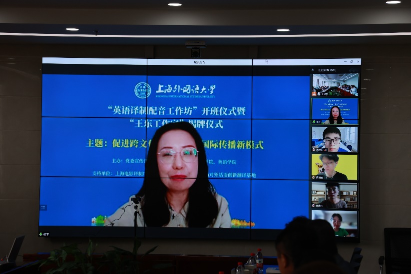 9月30日,英语译制配音工作坊开班仪式和王东工作室揭牌仪式在上海外国语大学国教中心209举行。活动采用线上线下相结合的形式,主题为促进跨文化对话,创新国际传播模式。