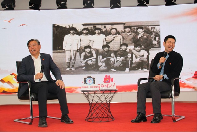 活动现场,通过一组老照片,姜书记结合自身经历,讲述了上外的发展变迁。他感慨地讲到,过去资源有限,学生们想读原版书、想去图书馆,都要去“抢”。但进入上外学习工作40年来,上外的物质条件发生了天翻地覆的变化,硬件设施、学习资源以及交换平台,都在不断丰富和完善。