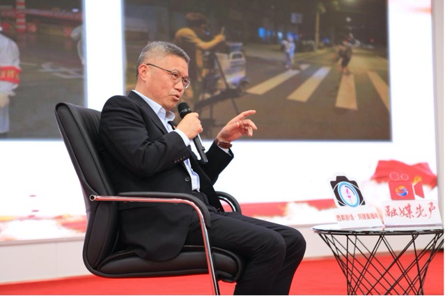 陆忠新部长曾有一段军旅生涯,被同仁称为“硬核部长”的他结合自己的独特经历,总结出了新闻工作的三个“战”字——新闻工作始终处于“战时状态”,新闻工作者要具备“战士担当”、拥有“战斗姿态”。如果把工作岗位比作一把尖刀,他希望同学们能够成为尖刀上的刀尖。
