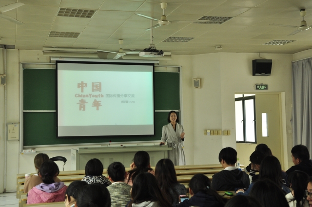 作为“China Youth”中国青年形象外宣新媒体团队负责人,大三优秀学生杨斯童分享自己的青年国际传播心得体会,从国家形象宣传的具体事例着手,强调新媒体发挥日益重要的作用,分享团队现已运行外国社交媒体账号的经验。“China Youth”中国青年的理念是要用青年人的故事,向世界发声,讲述真实中国,在国内外获得比较多的关注,发挥积极作用。最后她讲述自己的成长经历并感谢学院的培养。