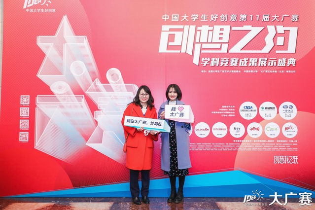 2019年11月23日下午14:00,第11届大学生广告艺术大赛(简称大广赛)学科竞赛成果展示盛典在北京全国政协礼堂隆重举行。新闻传播学院2017级广告专业本科生逯文娟、柳思怡、郭雨馨以及2017级国际新闻专业郭佳伊、童盈盈组成的团队,在王子涵老师的指导下获得第11届大广赛策划案类全国二等奖。