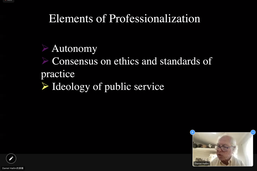 来自美国加利福尼亚大学圣地亚哥分校的Daniel C. Hallin教授以“新闻专业主义在当下面临的挑战”为题发表主旨演讲。Daniel教授探讨了“新闻专业主义”的多元定义,并分析了网络媒体时代下给新闻专业实践带来冲击的多种因素。主旨演讲后,Daniel教授同与会成员进行了积极的问答互动。