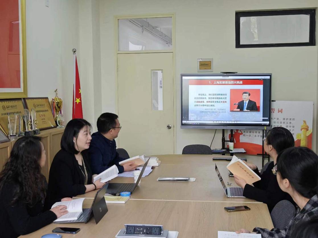 老师首先带领大家阅读学习了《习近平在上海》、《习近平上海足迹》等文献并交流了自己的心得体会。这两本书讲述了习近平总书记担任上海市委书记期间,团结带领广大干部群众开拓创新的生动实践,深刻反映了习近平总书记丰富政治智慧真挚的为民情怀、务实的工作作风、坚韧不拔的意志品质