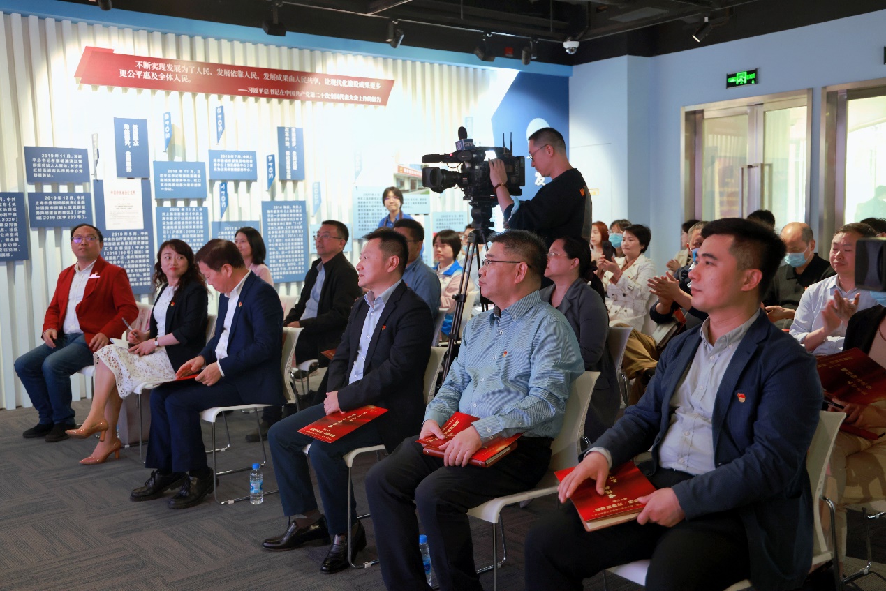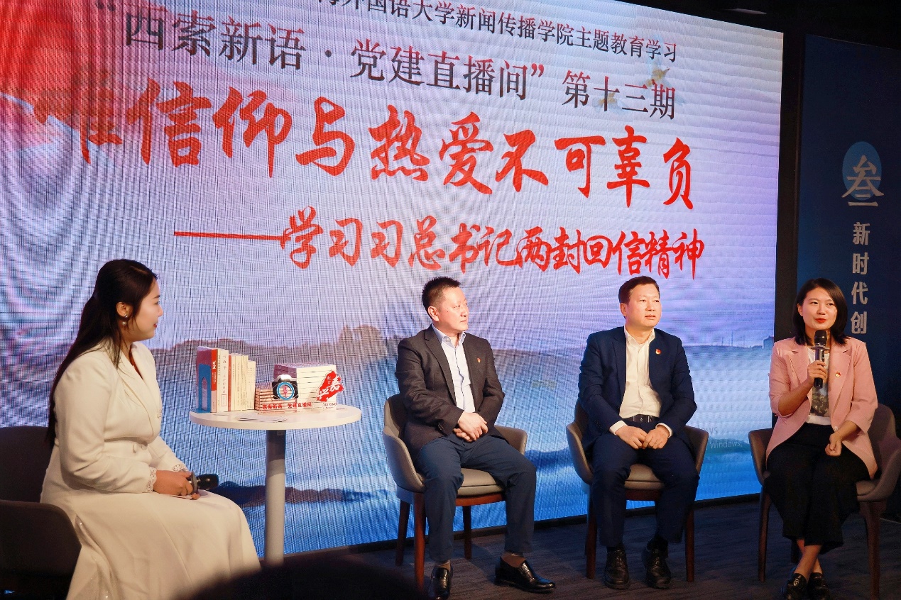 下午,在虹口区嘉兴路街道社区文化活动中心,新传学院和嘉兴路街道联合举办了“唯信仰与热爱不可辜负——学习习近平总书记两封回信精神”主题党课。复旦大学机关党委常务副书记周晔,虹口区嘉兴路街道党工委书记刘俊,党工委副书记、街道办事处主任黄海滨,上外新闻传播学院院长郭可,党委书记樊娟,组织部李先玲,解放日报社《支部生活》记者、栏目主持人、上外新传校友郑思思,虹口区嘉兴路街道和上海外国语大学新闻传播学院师生党员代表参加了活动。活动由新闻传播学院研究生第二党支部书记薛瑞主持。
