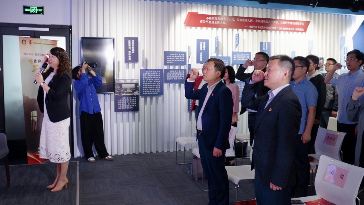 随后,在学院党委书记樊娟的带领下,全场党员重温了入党誓词,重温了入党初心。