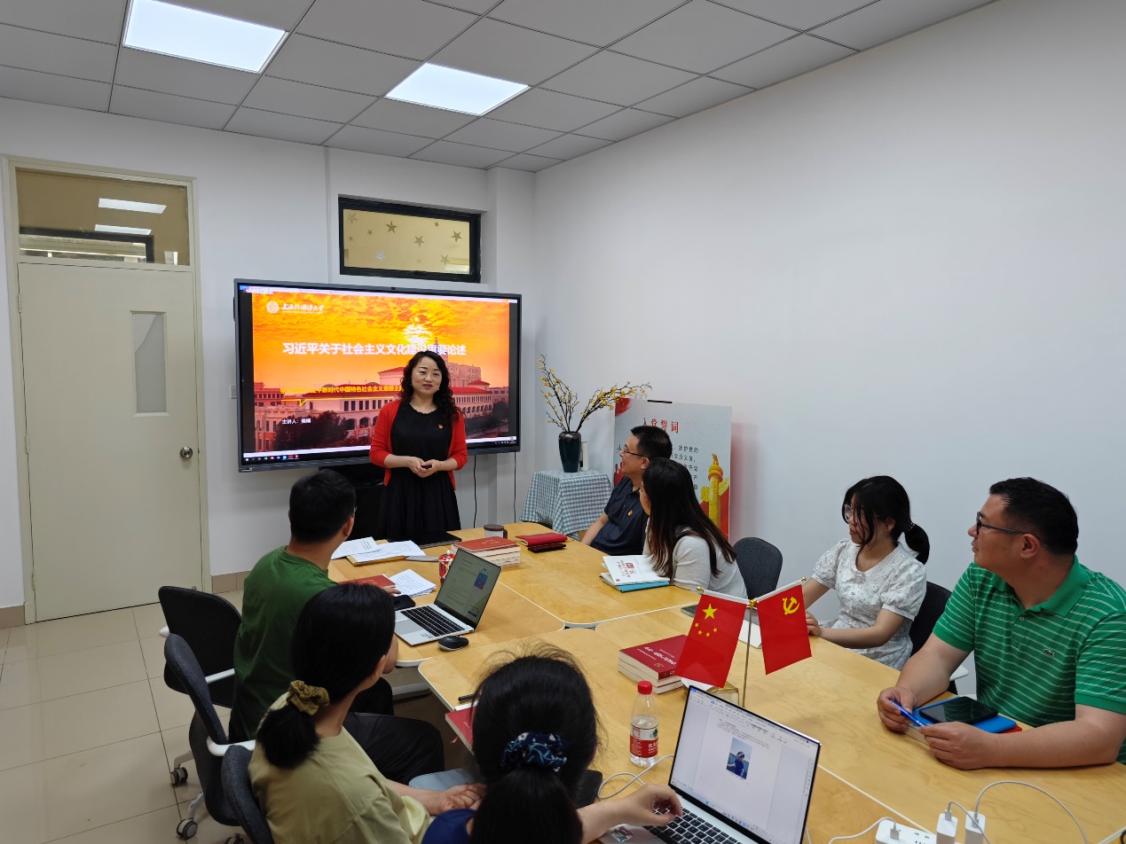 新闻传播学院党委书记樊娟以“习近平关于社会主义文化建设重要论述”为主题讲授专题党课。本次党课依托原文原著,从三个方面出发,系统讲述了习近平文化论述的时代背景、丰富内涵、理论特征以及战略意义。