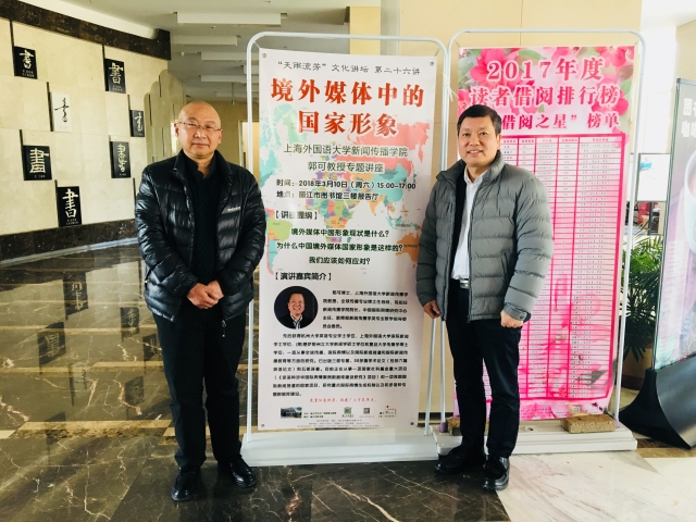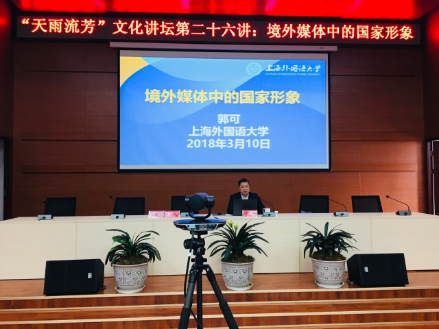 2018年3月10日,“天雨流芳”文化讲坛第二十六讲在丽江市图书馆三楼报告厅举行,上海外国语大学新闻传播学院院长郭可教授作题为“境外媒体中的国家形象”的主题讲座。丽江市图书馆馆长杜云主持讲座,市民约250人参与现场聆听,与此同时丽江市玉龙纳西族自治县和永胜县图书馆参与讲座视频直播。