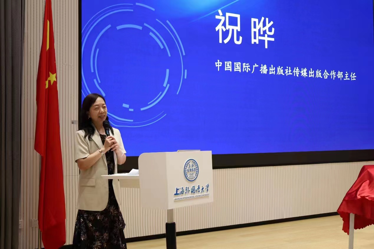新书发布环节,中国国际广播出版社传媒出版合作部主任祝晔和上海外国语大学博士生导师、新书作者王庆福依次发言,并同与会嘉宾一起为新书《国际传播视野中的纪录片创作》揭幕。