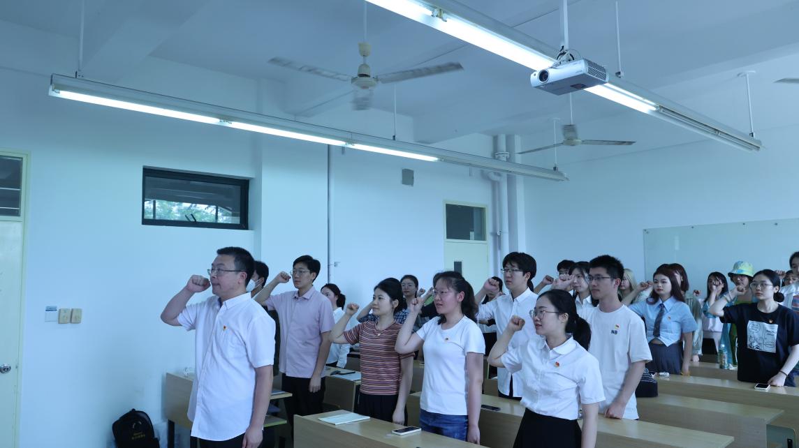 最后,胡正明老师带领全体毕业生党员重温入党誓词。同学们掷地有声的宣誓为本次专题教育活动画上了圆满的句号。