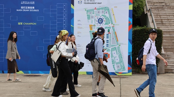 上外新闻传播学院与闵行区融媒体中心合作的ATP上海网球大师赛报道团正式启动,同学们拿起摄影、摄像设备,集体前往赛事所在地上海闵行区久事体育场馆旗忠网球中心,开展实地勘察和赛前报道培训。