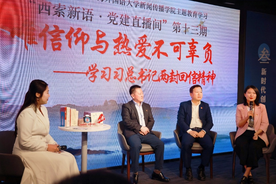 聚焦一个中心,支部坚持把开展好政治理论学习作为主题党日的重要内容,依托学院“西索新语·党建直播间”、“马克思主义新闻观进校园”、“背包记者团”等品牌活动,创新主题教育学习形式,积极响应国家战略需求,推动思政教育入脑入心。