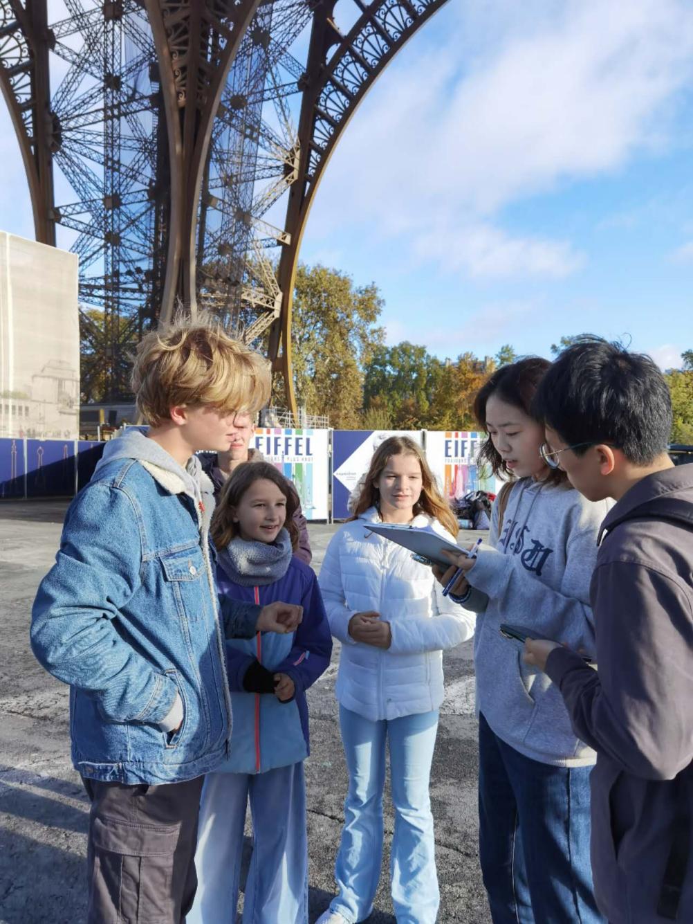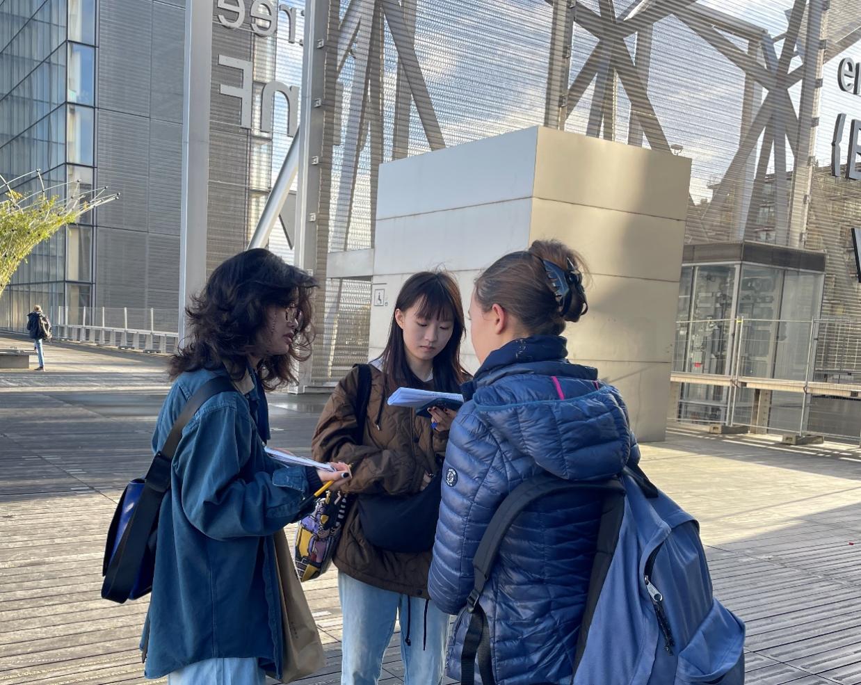 曹帅老师与张馨予、周奕言两位同学前往法国国家图书馆进行采访,了解巴黎市民对于塞纳河的理解与个人体验。孙羽婷、王艺翔和闫语格三位同学则去到巴黎另一标志性建筑物埃菲尔铁塔附近,与游客交流他们对塞纳河的印象。