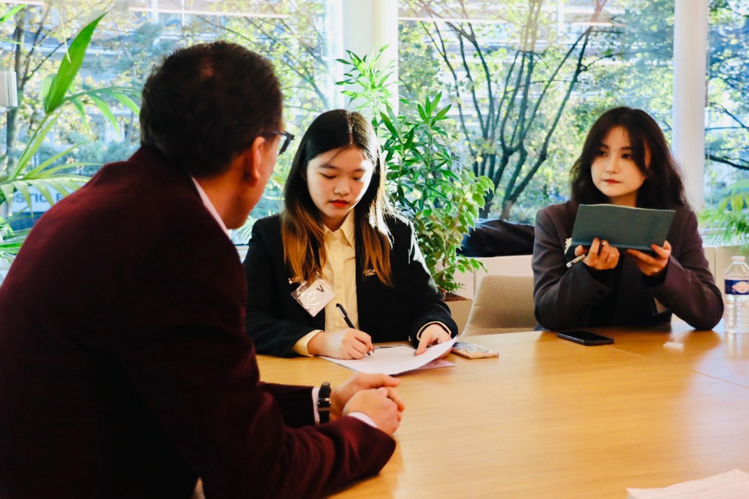 访谈伊始,张春雨老师向贝瀚青先生介绍了本次采访的背景与目的。金奕伶和朱营玉两位同学就贝瀚青先生在中国区任期内的工作与生活经历展开采访。