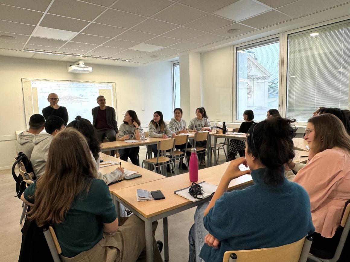 下午,报道团所有成员一齐前往巴黎三大。这是一所专注语言、文学、艺术、媒体与人文的知名学府。在巴黎三大国际合作亚洲区主任兼艺术与文化地缘政治研究生院院长Laurent Martin教授的迎接与安排下,报道团与巴黎三大文化媒介系的研究生们进行了深入的交流。