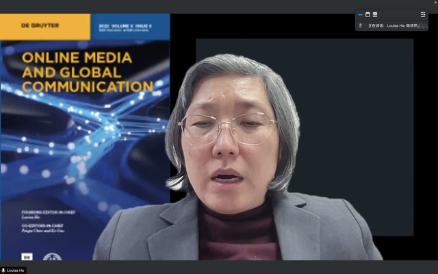 2023年12月4日上午,新闻传播学理论与方法前沿系列讲座通过线上视频会议方式举行。本次讲座由美国博林格林州立大学(Bowling Green State University)卓越研究教授,学术期刊《网络媒体与全球传播》创始主编哈筱盈(Louisa Ha)教授主讲,主题为“社交媒体网络红人作为网络意见领袖的说服效果:全球传播研究议程(Persuasive Effects of Social Media Influencers as Online Opinion Leaders: Agenda for Global Communication Research)”。本次讲座由新闻传播学院副院长陈沛芹教授主持。