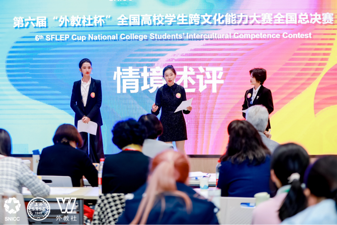 本此全国决赛有来自全国23个省市741所高校的52支中国学生代表队和20支国际学生代表队参加。上海外国语大学中国学生代表队三位同学围绕 “多元文化生活”主题开发情景短剧,给现场评委和观众留下了深刻的印象,顺利晋级总决赛。总决赛中,三位同学在有限的时间对跨文化案例展开精彩的情景评述,展示了超强的团队协作能力和超高的跨文化沟通能力。
