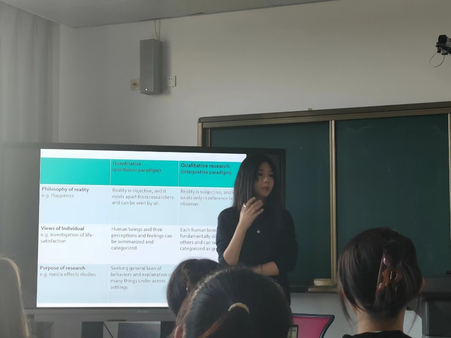 12月7日上午,美国罗林斯学院传播学助理教授、教职科学研究发展会员会委员张若楠以“新闻传播学定量定性研究设计”为主题,为新闻传播学院本科学生带来一场精彩的讲座,详细介绍了定量和定性研究各自主要的研究方法,旨在帮助同学们深入了解各种研究方法的利弊和使用场景,找到适合自己的研究方法。张若楠博士主要研究方向为社交媒体用户心理及营销策略、网红市场经济以及人工智能传播的应用和影响力,已发表数篇学术论文,曾为十余个SSCI期刊担任匿名审稿人。