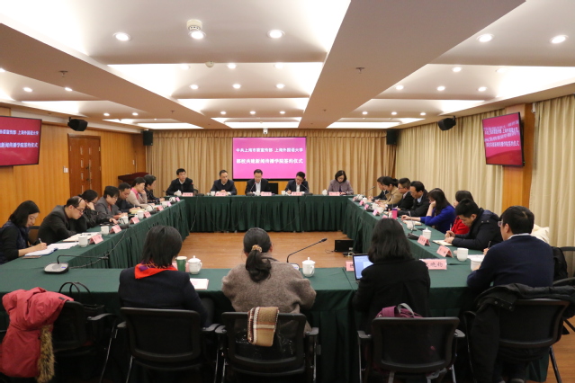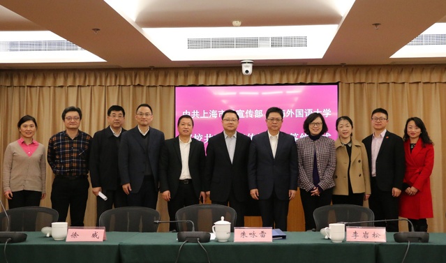 2月27日下午,中共上海市委宣传部与上海外国语大学在市委宣传部签署共建新闻传播学院协议。中共上海市委副秘书长、宣传部副部长朱咏雷,上海外国语大学党委副书记、校长李岩松,上海市委宣传部新闻处、干部处、发改办、舆情处和部校共建新闻学院领导小组等负责人,上海市委网信办、外宣办等部门负责人,上海外国语大学有关职能部门领导以及新闻传播学院党政领导班子成员出席了本次活动。签约仪式由市委宣传部部校共建新闻学院领导小组办公室主任孙卫星主持。