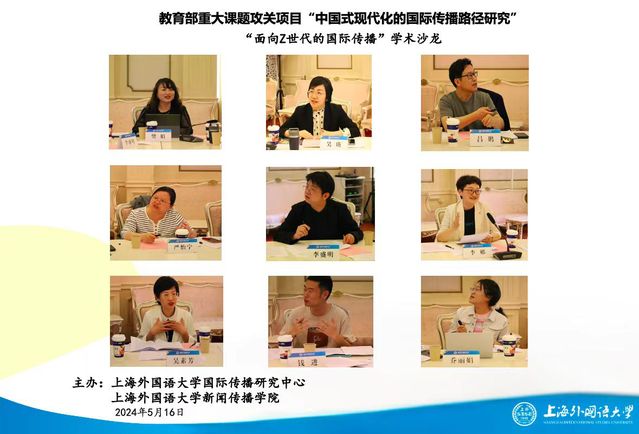 5月16日,“面向Z世代的国际传播”学术沙龙在上海外国语大学虹口校区举行,沙龙是教育部哲学社会科学重大课题攻关项目“中国式现代化的国际传播路径研究”的系列研讨活动之一。来自上海社会科学院、华东政法大学、《光明日报》《中州学刊》《文摘报》以及课题组的10余位专家学者参加研讨。