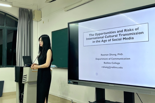 527日下午,新闻传播学理论与方法前沿系列讲座在1教楼1254室展开新的一讲。本次讲座的嘉宾是美国罗林斯学院传播学助理教授张若楠老师。张老师的研究方向为社交媒体用户心理及营销策略,网红市场经济,以及人工智能传播的应用和影响力,目前已发表学术论文近二十篇。