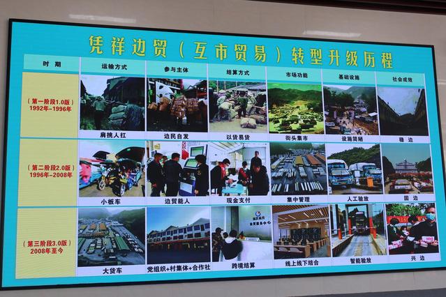 凭祥的边民互市贸易经历了两次转型升级。在第一阶段,贸易没有海关监管,主要是边民自发地肩挑人扛,以货易货。在第二阶段,海关边检入驻,互市贸易主要靠边贸能人带动,逐渐规范起来,并采用了现金支付。在第三阶段,党组织、村集体和合作社共同参与,并引入了跨境结算。