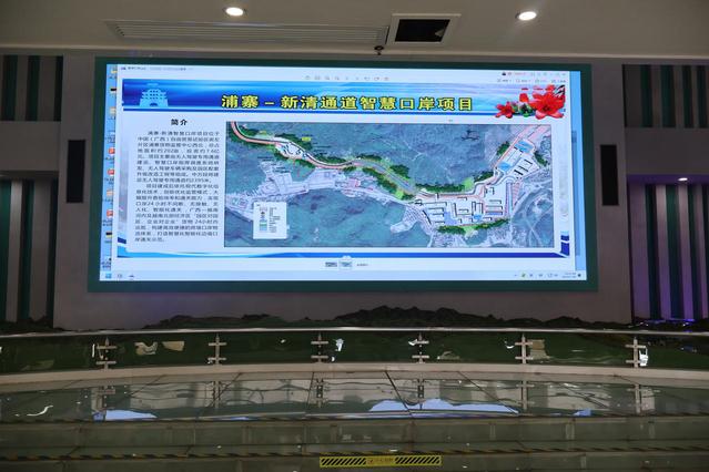 工作人员还重点介绍了浦寨—新清通道智慧口岸项目的创新性。该项目总占地面积约202亩,依托现代数字化信息化技术创新优化监管模式,可实现口岸24小时不间断、无接触、无人化、智能化通关。