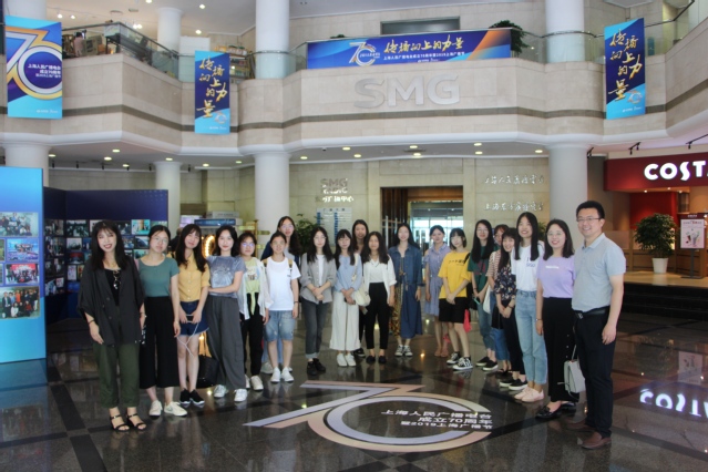 65日上午,新闻传播学院党总支副书记胡正明、辅导员郑涵一带领20多名本研学生前往位于虹桥路广播大厦的SMG东方广播中心参观。