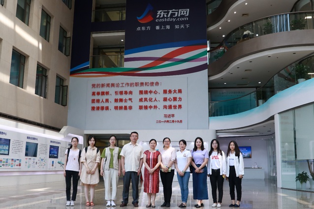 611日上午,新闻传播学院党总支书记樊娟、副院长严怡宁、党总支副书记胡正明、辅导员郑涵一带领本研学生前往东方网进行了参观。