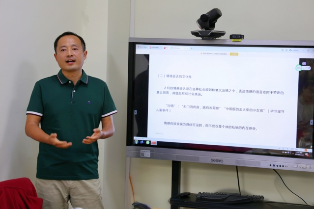 接下来,袁老师就传播学领域中的情感研究是否可能的问题进行了探讨。他先提出了情感研究的困扰,即情感复杂多变,在体验和表达中间存在不一致的情况。随后他提出三个回应的角度。首先,情感表达具有文化性,公开表达的情感是社会秩序形成的重要基础。其次,情感表达和体验具有相互性,二者相互激发。此外,情感表达作为一种言语行为,有“自我探究”和“自我改变”的功能。他指出,不应该把情感研究局限于脑科学或心理学,而是应该看到其文化、语言、符号意义等交织互动的一面。随后,他对当前情感研究领域存在的问题进行了分析。第一,由于网络文本自身的问题,网络情感研究难以深入。第二,他认为目前对情感与社会行为关系互动的研究较为缺乏。他还指出,目前的情感研究领域的研究问题存在相似性,有待进一步创新。