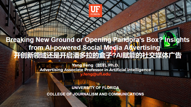 12月9日上午,美国佛罗里达大学新闻与传播学院人工智能广告副教授封洋老师受邀为上外新闻传播学院的同学带来题为“AI赋能的社交媒体广告”的讲座。本次讲座由盛颖妍老师主持。