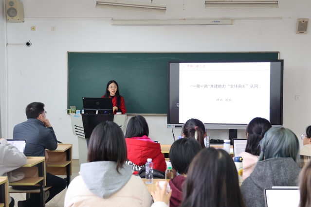 12月4日下午,中国人民大学新闻学院教授、中国人民大学公共外交研究院副院长钟新受邀为学院师生带来题为“‘一带一路’共建助力‘全球南方’认同”的学术讲座。郑闯老师主持讲座。