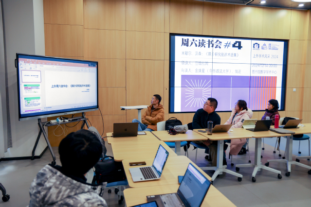 12月14日上午,上外松江校区图书馆数字学术中心内,一场围绕米歇尔·汉森所著《媒介研究批评术语集》的读书会圆满举行。本次读书会由旦增拉姆同学领读,华东政法大学韬奋新闻传播学院副教授金庚星老师与我院钱进老师作为与读人,分别从审美、技术与社会三个维度深入解析了媒介与现代社会的交织与影响。