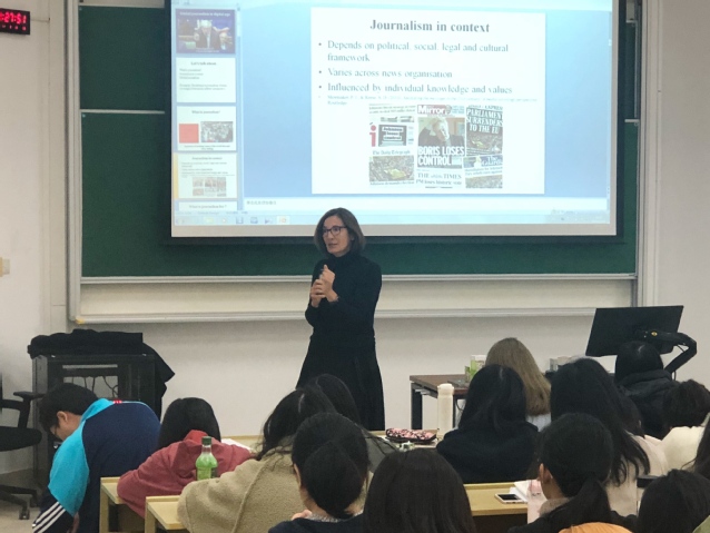 12月11日上午,世界新闻教育大会(WJEC)主席Verica Rupar教授应邀访问上海外国语大学新闻传播学院,并在上外松江校区3154教室开展关于“数字化时代下的全球新闻”讲座,新闻传播学院副院长陈沛芹教授主持讲座。