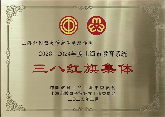 2025年3月,在上海市教育系统举办的纪念“三八”国际妇女节115周年暨先进表彰大会上,公布了《关于表彰2023-2024年度上海市教育系统三八红旗手(集体)的决定》,上海外国语大学新闻传播学院荣获“2023-2024年度上海市教育系统三八红旗集体”。