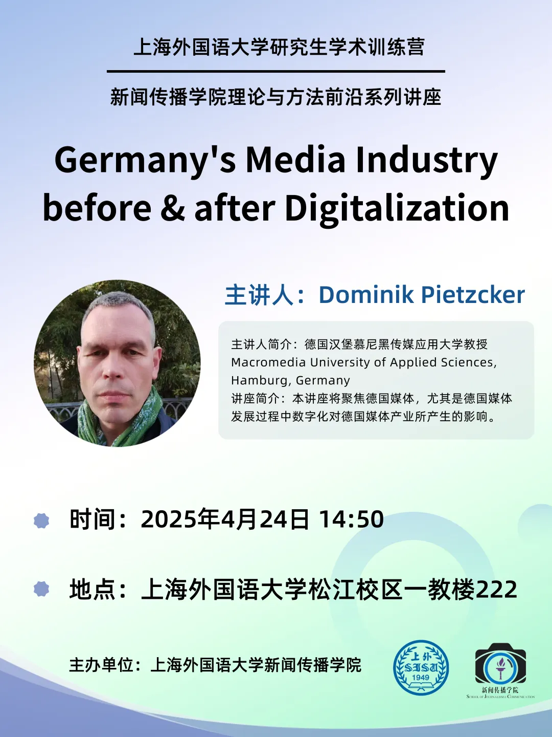 讲座简介:本讲座将聚焦德国媒体,尤其是德国媒体发展过程中数字化对德国媒体产业所产生的影响。