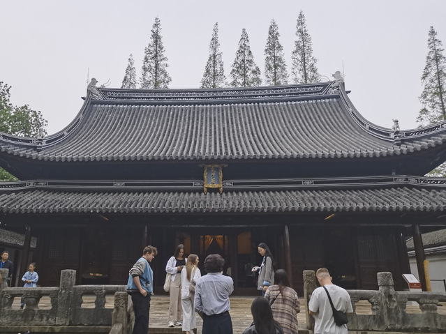 午后,行程转向文化探索。成员们先后走访嘉定博物馆、州桥老街与孔庙三大文化地标。在嘉定博物馆,外国青年们系统了解了嘉定深厚的历史文化底蕴。随后,团队移步至州桥老街,古朴典雅的法华塔与小桥流水的江南景致相映成趣,成员们纷纷驻足观赏、拍照留念,深切感受上海独特的自然人文风貌。行程最后,团队来到具有八百余年历史的嘉定孔庙,庄严肃穆的古建筑群令外国青年们深感震撼。在参观过程中,他们对孔子生平及儒家文化表现出浓厚兴趣,主动向现场志愿者请教相关历史典故。