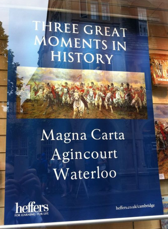 英国人热情纪念的三个历史事件:《大宪章》、阿金库尔战役、滑铁卢战役。图片摄于英国剑桥大学,李宏图提供。