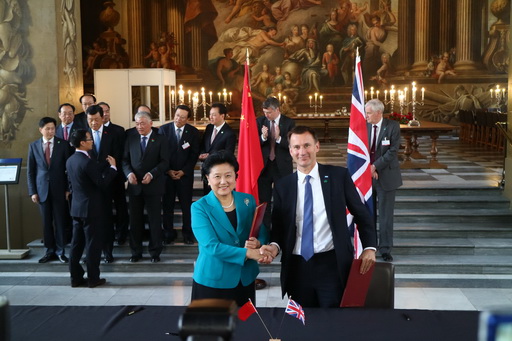 刘延东副总理与英国卫生大臣杰里米·亨特签署相关协议