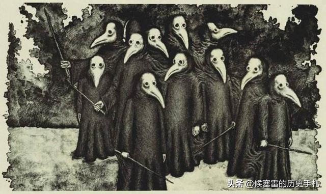 英国是17世纪遭受瘟疫侵袭最严重的国家之一。自14世纪黑死病第一次袭击英国以来,此后的300多年里,欧洲大陆一直笼罩在瘟疫的阴影之下。1665-1666年的“伦敦大瘟疫”作为黑死病的又一次延续和爆发,对英国造成了无法比拟的巨大打击。在此期间,瘟疫医生在治疗、运输病人中发挥着巨大作用。由于每天都面临死亡的威胁,他们不得不采用特殊的装备将自己与病人隔离,于是便有了外表恐怖的鸟嘴面具。这一面具和装束最初于1630年由法国医生查尔斯·德洛姆发明。医生全身披上防油布制成的大衣,双手用巨大的手套包起来,并戴着帽子。他们把脸全藏在鸟嘴面具里,眼睛由透明的玻璃护着。面具里有棉花等填充物,可以起到起过滤空气的作用。填充物还包括一些芳香物质,包含龙涎香、蜜蜂花、留兰香叶、樟脑等等。这些物质当时被认为可以保护医师免受瘴气的侵害。可以说,戴着鸟嘴面具的瘟疫医生就是现今穿着防护服的医护人员的最初起源;而鸟嘴面具也成为了当时意义上的“口罩”。