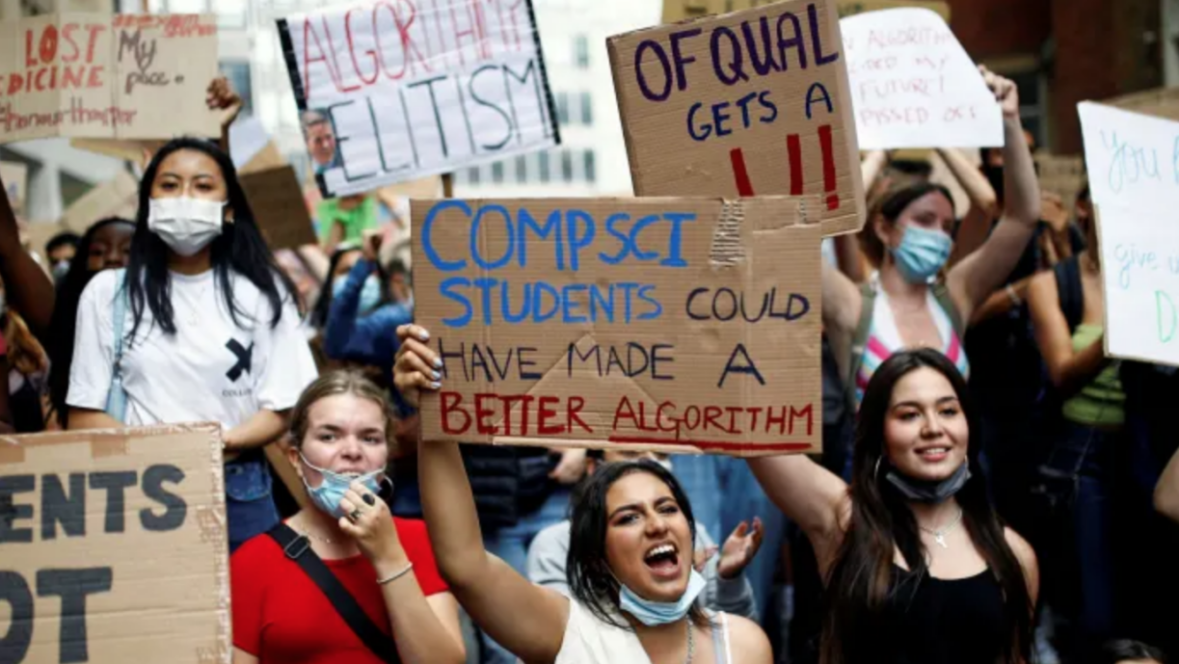 (英国学生抗疫“高考”成绩不公 图源:路透社)