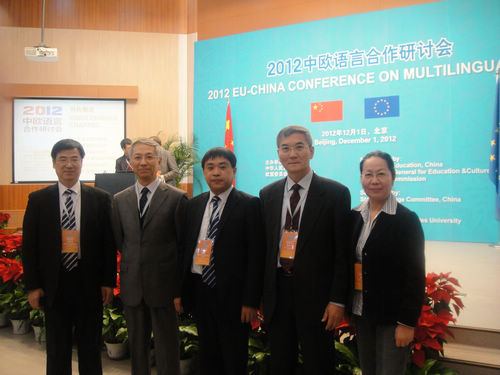 2012年12月1日,由中华人民共和教育部、欧盟委员会教育文化司主办,受中华人民共和国国家语言文字工作委员会支持,“中国-欧洲语言合作研讨会”在北京外国语大学召开。上海外国语大学参会的代表有:上海外国语大学周承副校长、西语系主任陆经生教授、海外合作学院院长梅德明教授、高翻学院院长柴明颎教授、欧盟研究中心执行副主任戴启秀教授、英国研究中心副主任高建副教授、中国外语战略研究中心副主任沈骑副教授。