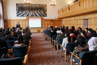 我听说贵校有400多名中国学生,我想吸引他们的不仅是因为北爱风光秀丽,而且是因为贵校教学历史悠久,学术成就昭著,是著名的英国常春藤联盟——“罗素集团”成员。