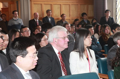 在我访问贵校之前,我翻阅了一些有关贵校的资料。特别有一点吸引了我,这就是:贵校的登山俱乐部竟然有三位会员成功登顶珠穆朗玛峰。由此,我感到,只要我们坚定信心,不懈努力,我们就一定能攀登理解的高峰,就一定能不断增进互信,深化对话,扩大合作,中英就一定能建立更加造福于两国和世界的新型大国关系!