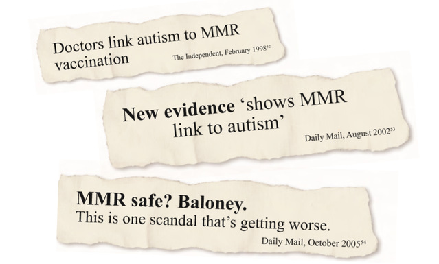 更多的分析则将矛头指向错误的媒体报道、媒体宣传造成的谣言传播,包括传统意义上的报纸杂志和现代的互联网传播媒介如社交网络平台。现代的反疫苗浪潮往往被认为始于1998年英国医生AndrewWakefield在《柳叶刀》上发表的一篇声称麻疹疫苗与自闭症有关的论文。文章发表后一系列的媒体报道瞬间将反疫苗风潮推向顶点,尽管该文于2010年因数据造假被《柳叶刀》撤稿,作者的医师执照被吊销,其在家长中引发的恐慌至今未停,而不断又有新的研究者提出类似观点(如大学教授Chris Exley也将包括HPV疫苗在内的部分疫苗与自闭症联系在一起)再加上一些有影响力的明星的支持,即使受到批判和制裁,这些人物也会被反疫苗者利用以发动更多的人加入达到反疫苗宣传目的甚至背后更深层次的其他目的。