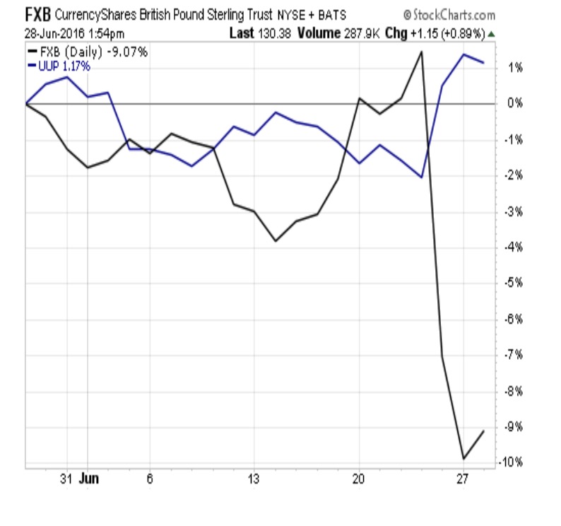 2016年6月24日下午2时,欧洲宣布了脱欧公投的最终结果,支持脱欧占比51.9%,支持留欧占比48.1%。作为欧盟历史上第一个宣布脱离欧盟的国家,英国面临的是市场的无规则应答。相比之前,英镑跌幅有所收窄,此前一度暴跌11%,创下31年来新低。欧洲股市开盘也迎来了大跌:德国股市暴跌近10%,英国跌9%,法国股市跌11%,西班牙股市跌17%;希腊股市重挫12.7%,银行股下挫17.4%;葡萄牙股指PSI 20跌9%,触及1996年以来最低水准。