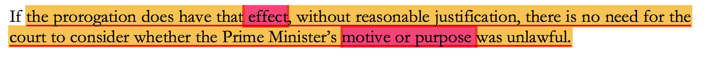 接着,最高法院将焦点集中在鲍里斯·约翰逊休闭议会举动的“效果”上。原告方律师代表认为,鲍里斯·约翰逊休闭议会的动机和目的,危及了“议会主权”原则。但法院从“效果”角度裁决,完美避开“动机”的主观性争议。