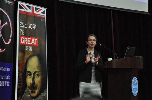 11月12日晚,来自英国牛津大学的莎士比亚研究专家蒂芙妮·斯特恩(Tiffany Stern)教授在上外松江校区图文西厅作了主题为“纸面上与舞台上的莎士比亚(Shakespear on Page and Stage)”的讲座,与在场的一百多名听众一起探讨了莎翁戏剧中文本与舞台的互动。讲座由李尚宏副教授主持。