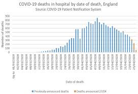 5月5日,英国外交大臣多米尼克·拉布就英国新冠病毒疫情讲话时表示,自新冠肺炎疫情在英国大面积暴发以来,全英国累计已有29427人病亡,英国的死亡人数超过意大利,位列欧洲第一,在全世界范围内则仅次于美国,居世界第二。同时,结合the conversation绘制的英国医院死亡人数图来看,英国已经度过了疫情的高峰期。