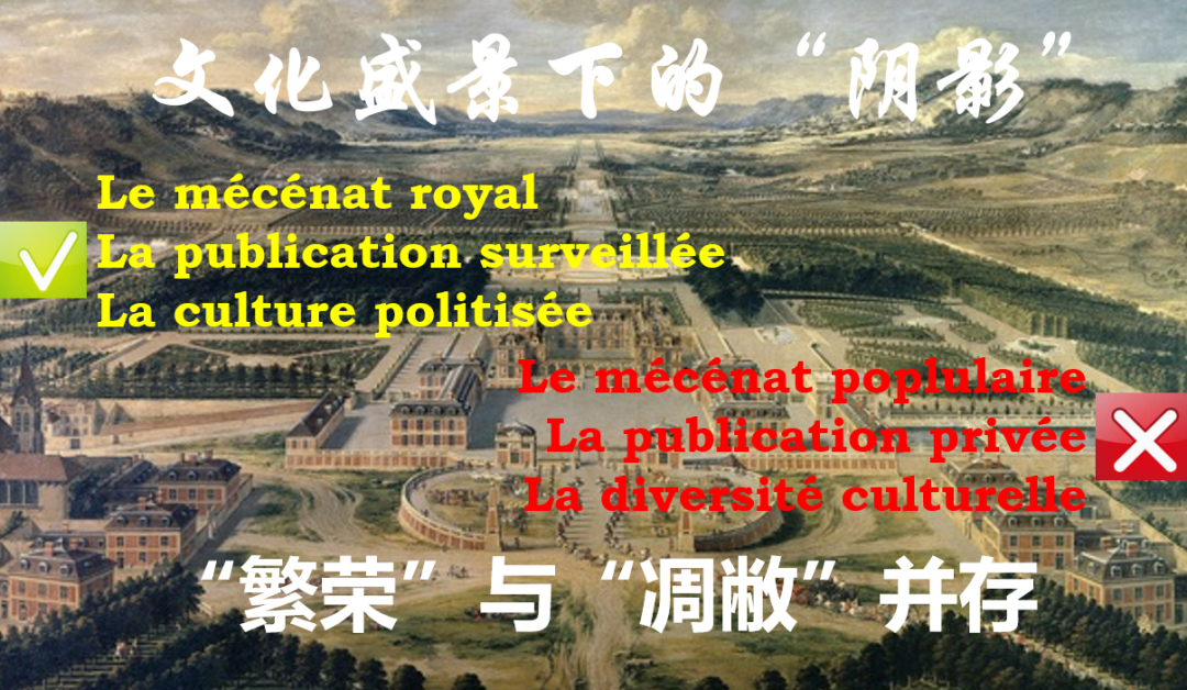课程以三个关键词——“年金”(les pensions)“御赐许可证”(les certificats scellés au grand sceau)“单一化”(la monopolisation)——作为切入点,从王权对文化事业的资助与控制、严苛的出版制度和文化机构的官僚化三个方面,分析绝对君主制对文化的影响。之后,刘常津老师通过将法国路易十四“伟大的世纪”(Le Grand Siècle)与处在同一历史时期的清朝“康乾盛世”进行类比,帮助学生理解“皇权至上”的专制制度在文化领域的共性特征。
